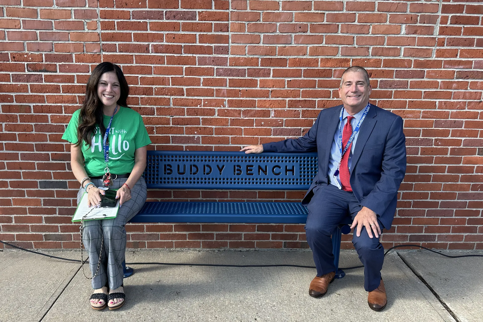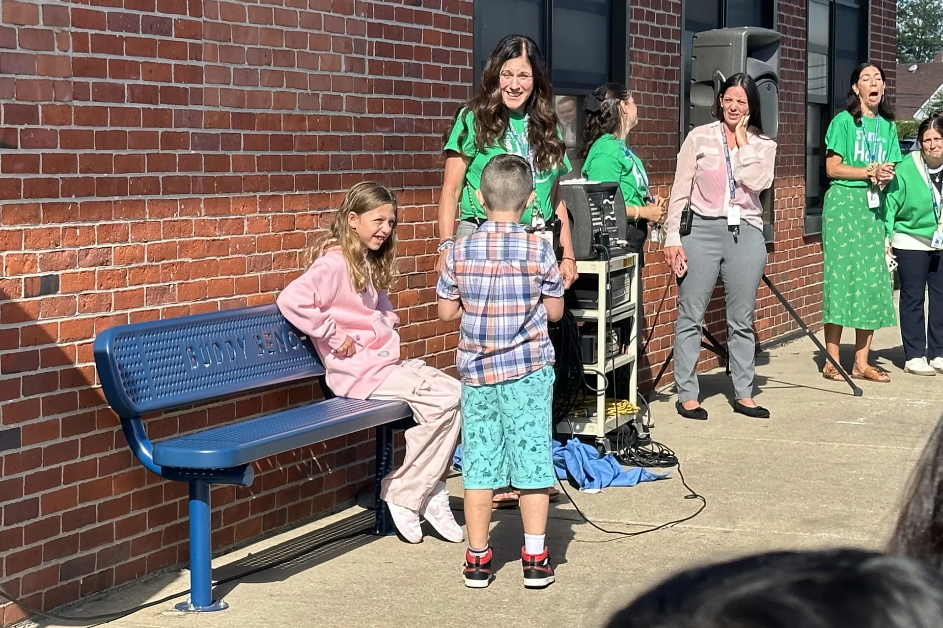Northside unveiled its brand-new Buddy Bench thanks to the generosity of our Student Council and the School Climate Committee. This special bench now has a home right by the playground and fields where our students enjoy outdoor recess. The idea of the Buddy Bench is that no one should ever feel left out or alone. If a child is feeling lonely, they can sit on the bench and a peer will notice and invite them to play.
