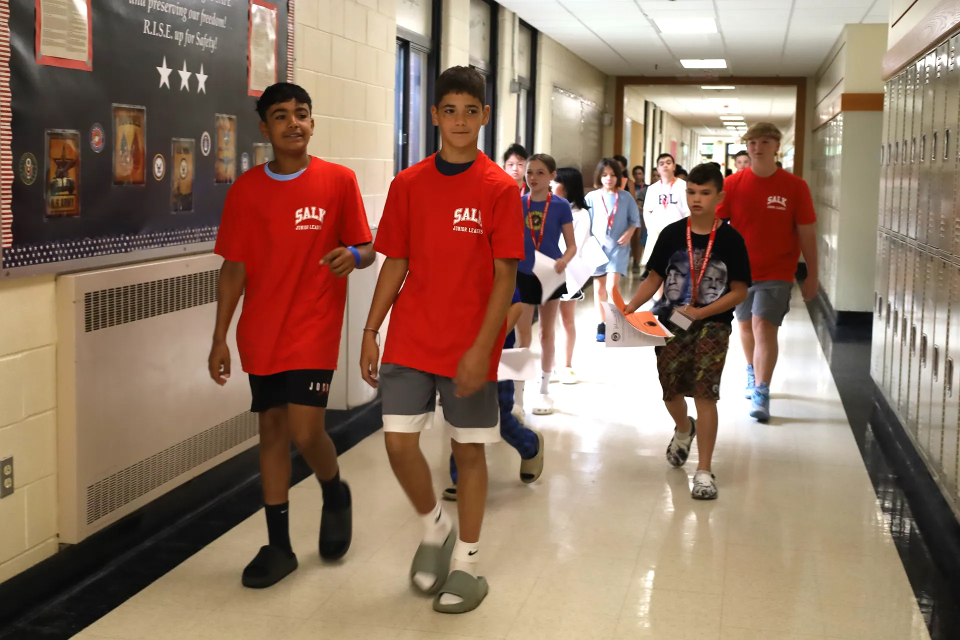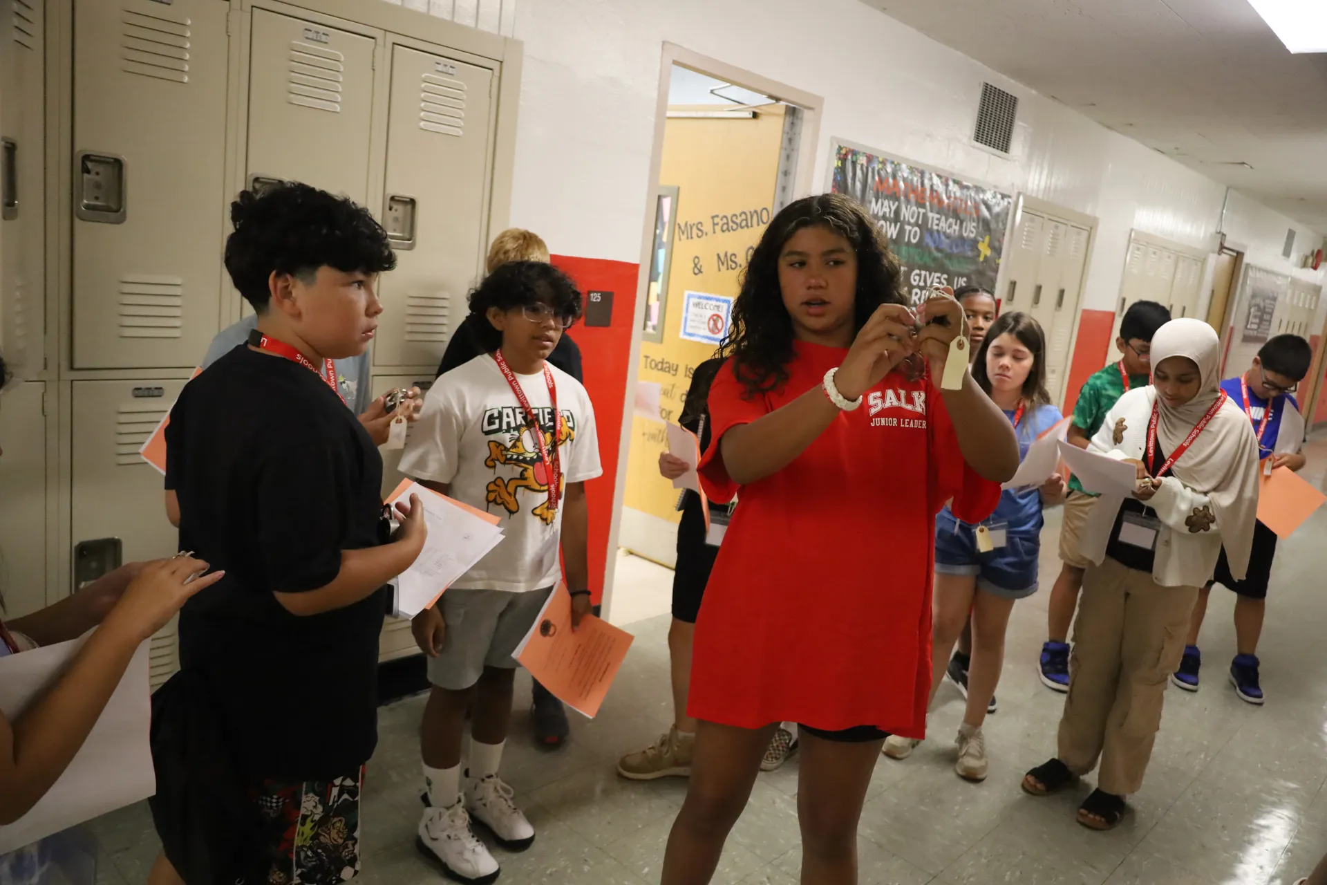 Starting in each building's respective auditorium, students were welcomed by principals and staff who shared guidance on the upcoming school year. Older Peer Leaders guided groups on tours throughout the building, pointing out key spots like the nurse and guidance offices and sharing insight on where they found success, such as clubs or athletics. Upon obtaining their locks, sixth graders located their lockers and learned how to put in the combination. The Salk and Wisdom Lane orientations help ensure a smooth start to the school year as students begin on Sept. 2.