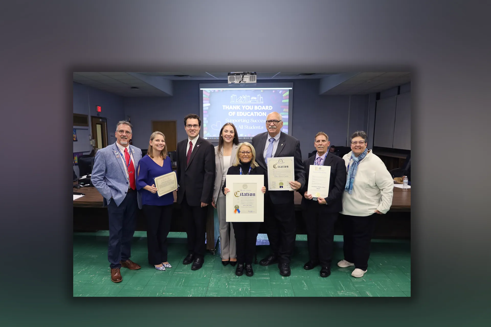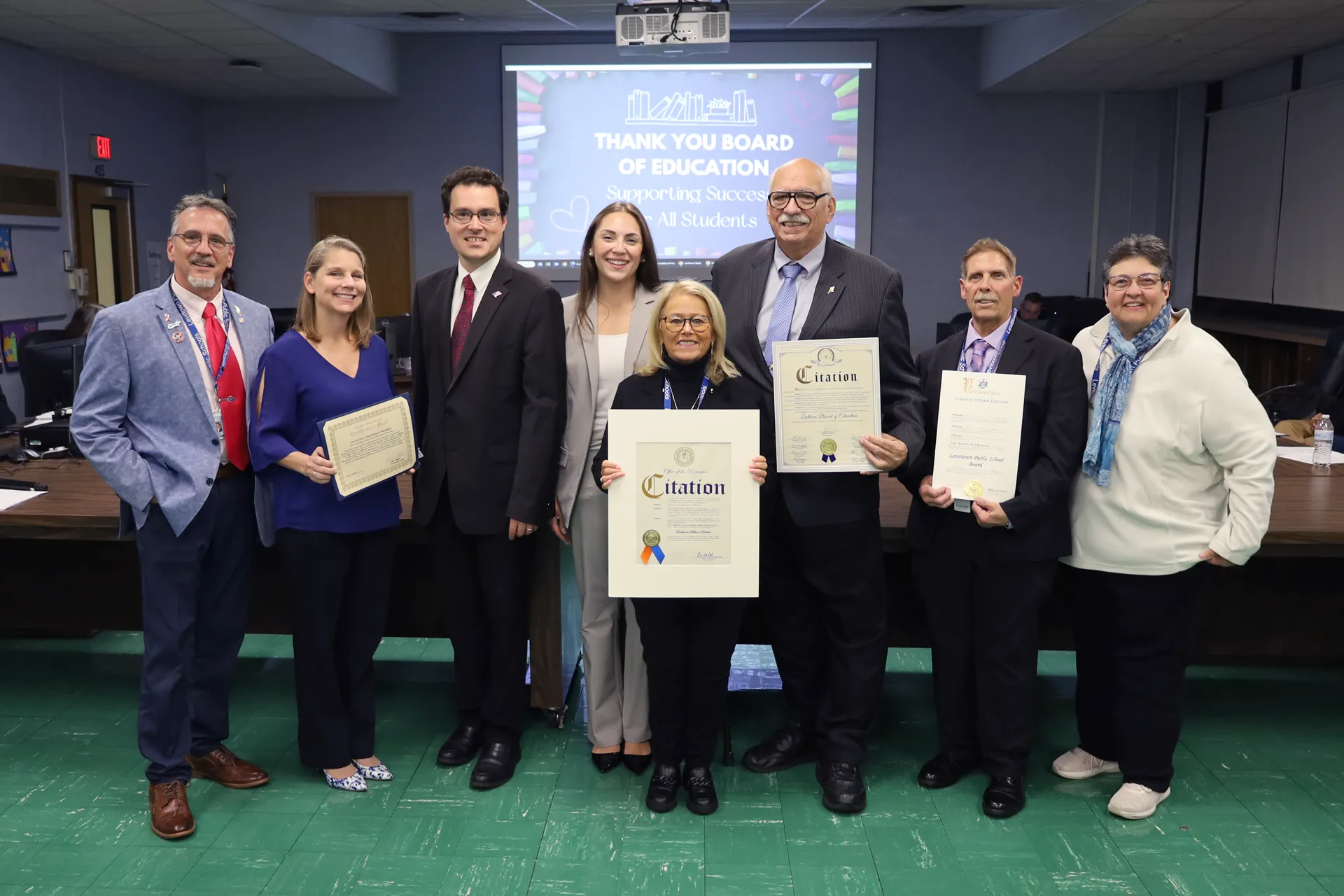 Students from Jonas E. Salk and Wisdom Lane middle schools, as well as Division Avenue and General Douglas MacArthur high school, stepped up the microphone to share messages of thanks. Both middle and high schoolers prepared a variety of gifts for trustees, including bleacher seats, flash drives, school merchandise and a new logo featuring both high school mascots crafted by the districtwide boys volleyball team. Additionally, elementary schoolers shared their thanks through a video presentation, and certificates were presented by County Executive Bruce Blakeman, Senator Steve Rhoads, Assemblyman John Mikulin and Town Councilman Dennis Dunne.?