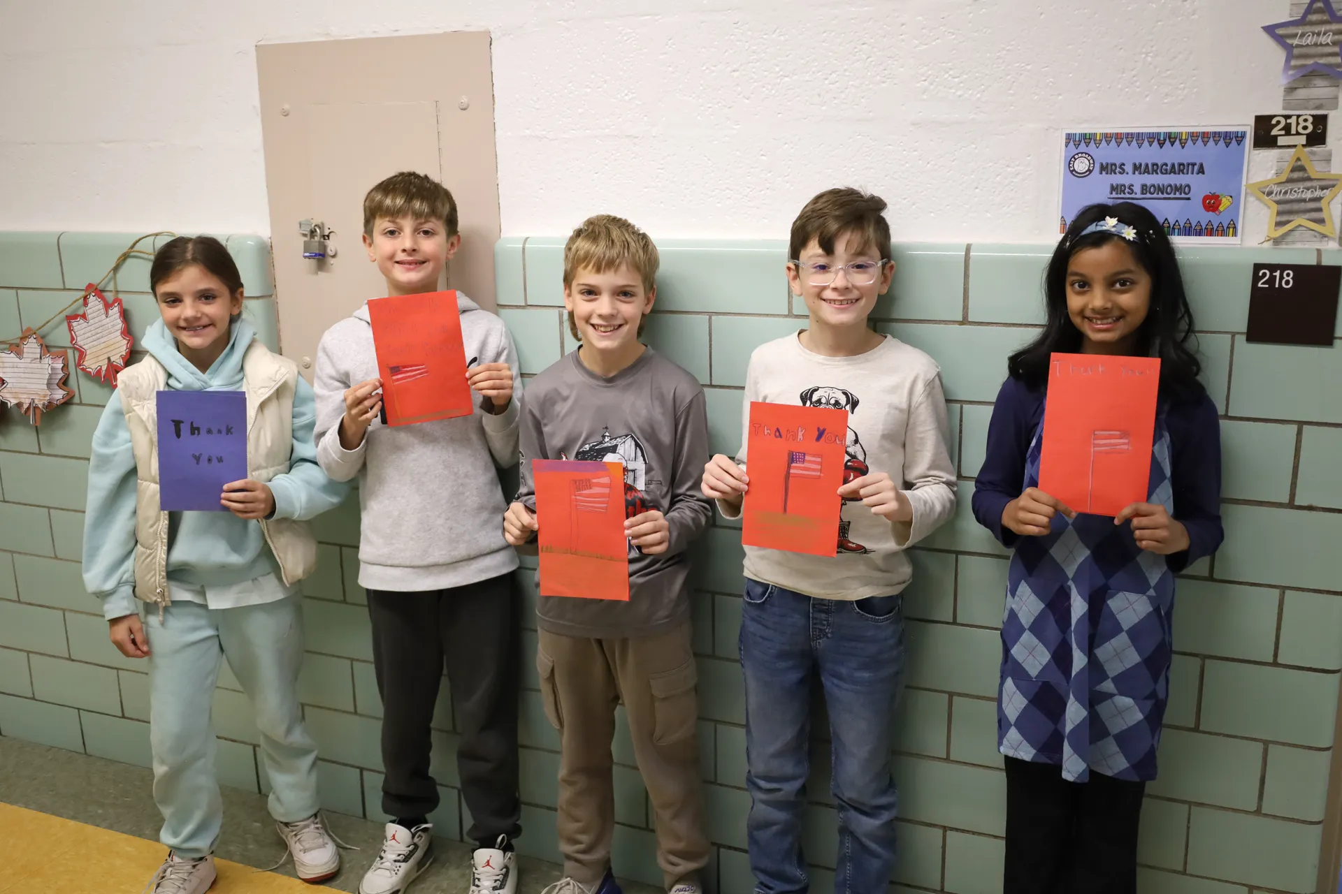 Students throughout the school diligently assembled cards with messages of thanks that popped with students' red, white and blue artwork. An effort led by fifth grade teacher Susan Cavanaugh, the cards will be sent to the Warrior Ranch Foundation in Calverton, NY, which provides equine therapy for veterans. This year marks the second in a row that cards will be sent, teaching students the importance of honoring those who served.