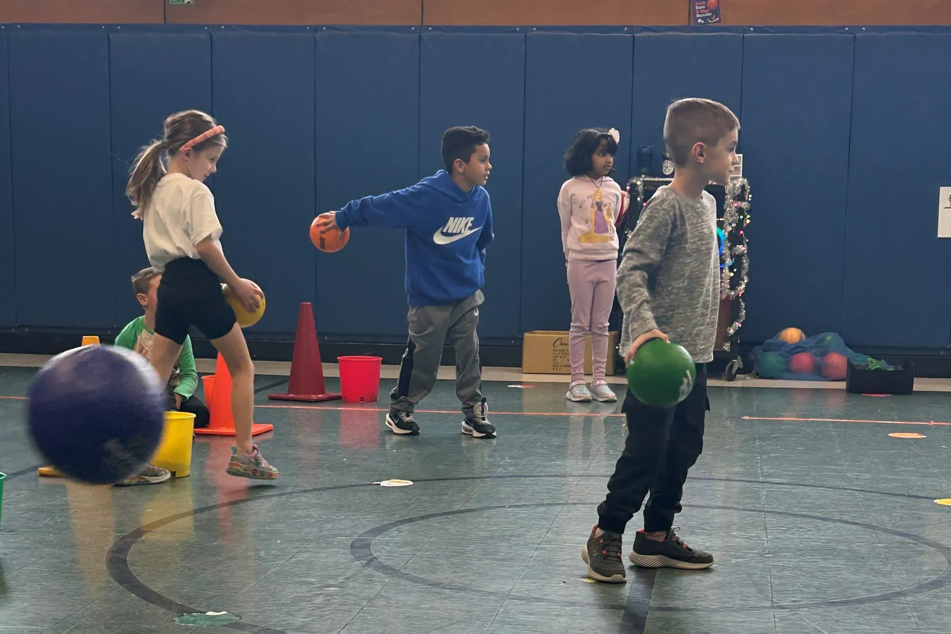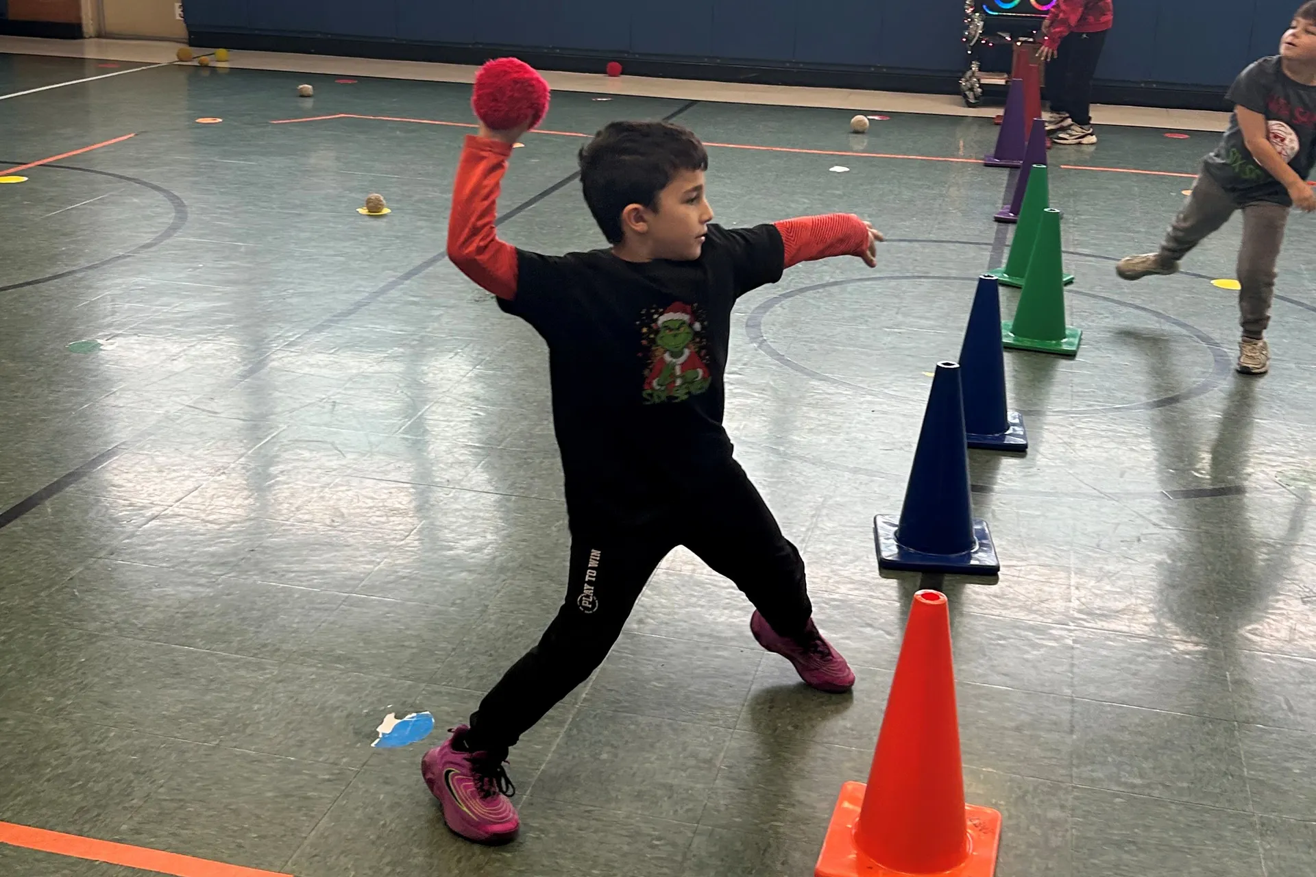Mr. Bechhoff's Physical Education classes have been in Holiday Spirit playing "Battle for Whoville". In this fun game, students get to work on their throwing skills as well as their blocking skills. Students aim to try and knock down the other teams' "Who Houses"!