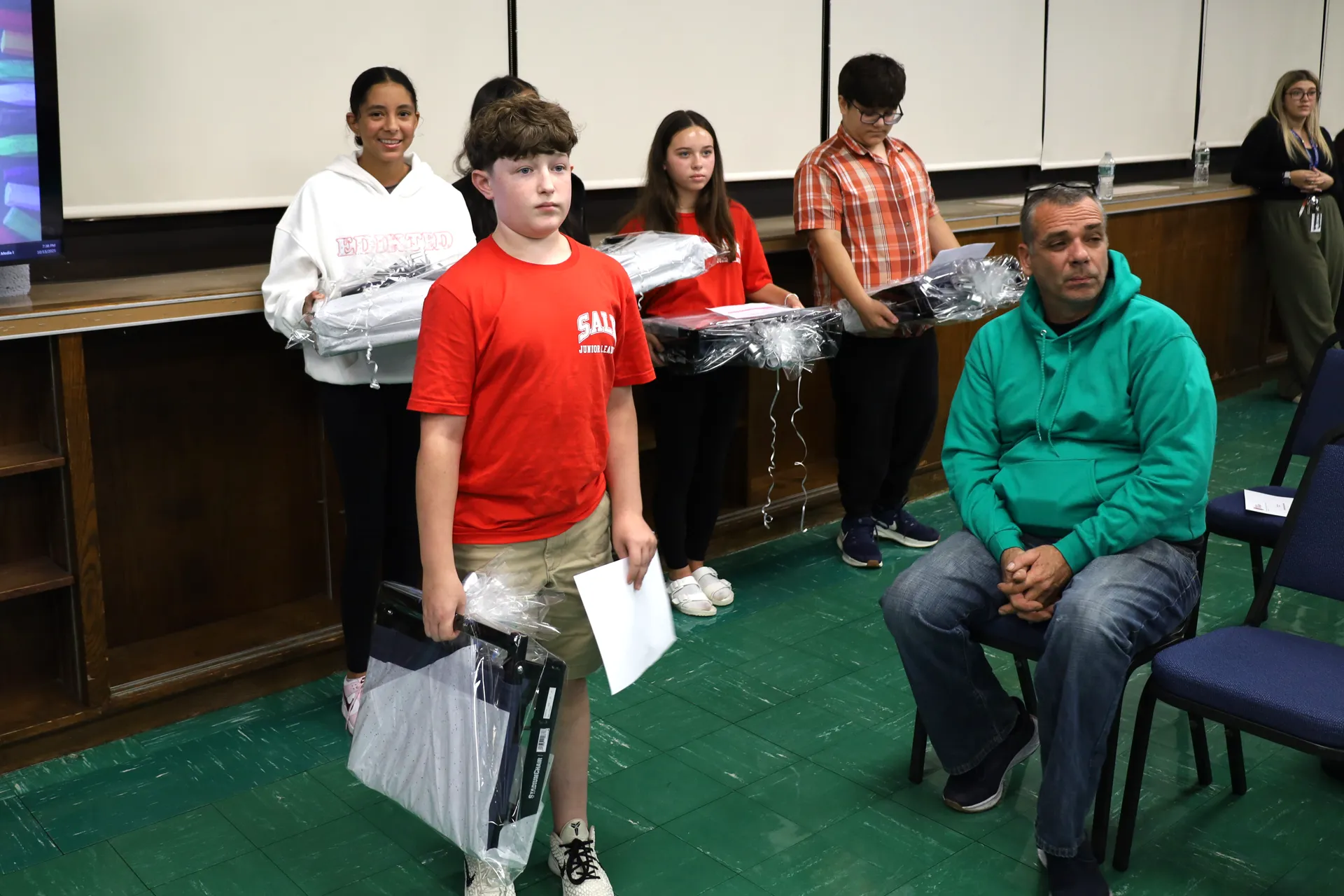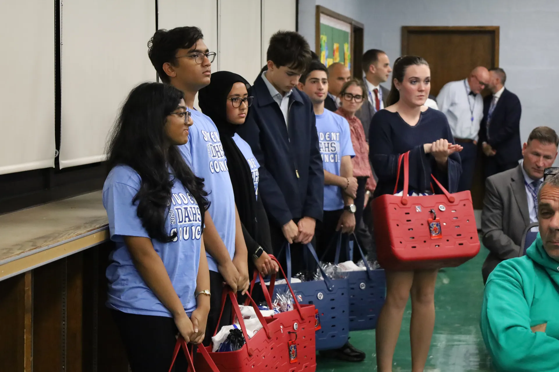 Students from Jonas E. Salk and Wisdom Lane middle schools, as well as Division Avenue and General Douglas MacArthur high school, stepped up the microphone to share messages of thanks. Both middle and high schoolers prepared a variety of gifts for trustees, including bleacher seats, flash drives, school merchandise and a new logo featuring both high school mascots crafted by the districtwide boys volleyball team. Additionally, elementary schoolers shared their thanks through a video presentation, and certificates were presented by County Executive Bruce Blakeman, Senator Steve Rhoads, Assemblyman John Mikulin and Town Councilman Dennis Dunne.?
